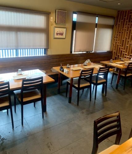 개방감 넘치는 일본식 모던하고 넓은 점내.4 명 자리도 있습니다.친구들과 함께 즐겁게 튀김을 드세요!